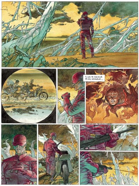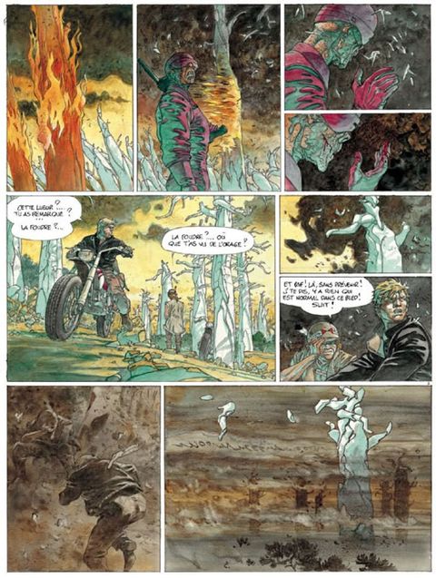 "Ecoute homme, écoute la terre...Entends-la gémir sous tes coups... Ton arrogance... Elle est ta mère et tu ne le sais plus... Homme cupide, homme stupide... Cette terre... Elle ne t'aime plus..." Dans un paysage de cauchemar, au coeur d'une forêt pétrifiée, le murmure du vent se fait menaçant.Dans cette ambiance délétère, Jérémiah et Kurdy, à court d'essence, acceptent d'escorter un groupe de cinq personnes aux prises ave des tueurs qui les poursuivent, contre un peu de carburant. Sans savoir contre qui ils vont devoir se battre, Jérémiah et Kurdy découvrent peu à peu les tensions qui règnent au sein du groupe qu'ils sont censés protéger. Le convoi avance lentement alors que la menace qui pèse sur eux se fait plus précise. Il existe plusieurs éditions avec même EAN/ISBN et des couvertures/DL différentes. L'EO est celle d'aout 2004