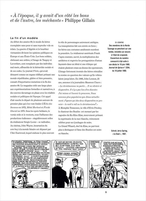 Avec l'avènement des années 60 puis 70, l'image idéalisée du héros se fissure. L'évolution du western est à cet égard assez éclairante : des héros incarnés par John Wayne, on passe aux personnages plus complexes incarnés par le Clint Eastwood des films de Sergio Leone. Le vent de contestation qui souffle dans un monde en pleine mutation passe aussi par la bande dessinée, qui s'affranchit peu à peu de ses codes un peu rigides pour aller vers une bande dessinée plus adulte, plus politique aussi. Jijé, qui avait été ulcéré par la ségrégation et le racisme qu'il avait constatés lors de son périple américain, campe en 1966, avec le scénariste Jacque Lob, un face-à-face entre Jerry Spring et le KuKluxKlan. Les réalités plus sombres de l'histoire du Far West sont ici invoquées, comme elles le seront ensuite dans "Le Duel", toujours avec Jacques Lob au scénario. Un nouvel élan créatif anime Jerry Spring. Pourtant il disparaît du sommaire de Spirou, pour ne revenir que dans les années 70, entre autres avec "La Fille du Canyon", puis "Le grand calumet", la dernière aventure du cow-boy.