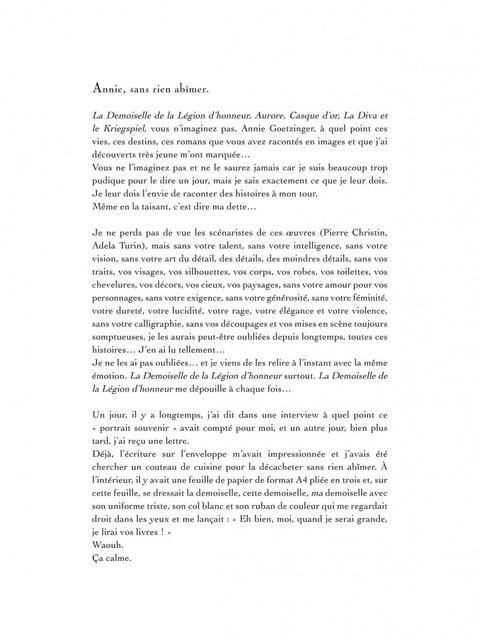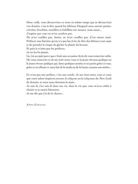 12 février 1947, le Tout-Paris se presse avenue Montaigne pour assister au premier défi lé d'un certain Christian Dior. Dans une envolée de longues jupes corolles, le défi lé commence. L'assistance est médusée : c'est un triomphe ! Carmel Snow, du Harper's Bazar, s'écrie : « It's quite a revolution, your dresses have such a new look! » En un mot, la carrière du couturier est lancée. À travers le regard de Clara, jeune chroniqueuse férue de mode, Annie Goetzinger nous emmène dans les coulisses de la maison Dior, devenue depuis un emblème de l'élégance parisienne.