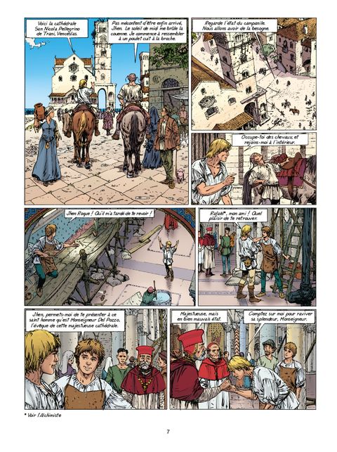 Jhen est appelé à Trani pour réparer la somptueuse cathédrale San Nicola di Pellegrino. Accompagné de Venceslas, le tailleur de pierres, il y retrouve son vieil ami Raphaël, déjà à l'ouvrage dans l'édifi ce. Le chantier est immense, rien ne doit entraver la réparation du campanile que la riche famille Saverio fi nance pour la gloire de Dieu. Mais un mal insidieux gagne peu à peu la ville et ses habitants. Si Jhen est habile architecte, il ne peut réparer les rancoeurs du passé. Bientôt, c'est toute la ville qui, guettée par la folie, menace de s'eff ondrer.