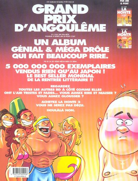 La Honte 2, le retour ! Vous n'y croyez pas ? Eh bien c'est pourtant vrai ! Jim et Pont, plus en forme que jamais, on remis le couvert et repris leurs crayons pour vous raconter ces petits riens qui continuent de nous pourrir la vie... Une fois que les deux auteurs vous auront décrit la honte qu'ils se payent eux-mêmes dans leur propre maison d'édition, ils vous présenteront toute une galerie de personnages truculents, dont le dénominateur commun est tout simplement de se payer la honte en public. Draguer avec le chien de son pote mais se prendre des bides monumentaux, envoyer un message salace par le biais d'Interflora mais se chopper la honte lorsque la fleuriste le hurle au téléphone au lieu de le faxer, être totalement perdu lorsqu' on nous demande notre avis sur le conflit israëlo-palestien et qu'on n'y capte rien, avouer ses pratiques masturbatoires pour un reportage vidéo qui sera diffusé devant tous ses copains de lycée, se faire capter par un ami à la sortie d'un concert d'Indochine, avoir des parents témoins de Jéhovah, être bloqué sur des sites pornos lorsque sa mère débarque à l'improviste dans la chambre, recevoir une claque alors qu'on attend un baiser... soit autant de raisons de se choper la honte réunies dans une BD à l'humour cynique et irrésistible ! Se moquant de nos complexes et de nos maladresses, Jim et Pont ont une nouvelle fois signé un album désopilant et criant de vérité. On en redemande !