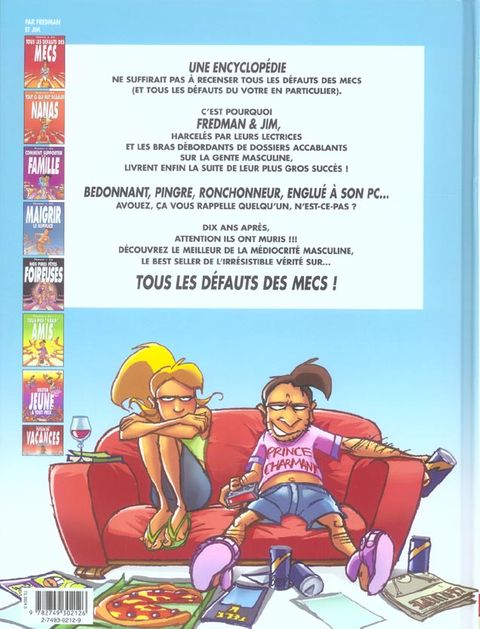 Messieurs, soyez fair-play ! Mesdames, mesdemoiselles, jubilez ! Voici le second tome destiné à épingler tous les défauts de nos hommes ! Eh oui, un second tome, il fallait au moins ça pour peaufiner la palette de tous ces petits trucs typiquement masculins qui nous irritent au plus haut point ! Prenons par exemple les flagrants délits ! Qui ne connaît pas LE super spécialiste de l'oenologie, maîtrisant sur le bout de la langue tout le vocabulaire, certes, mais qui boit avec délectation une piquette perfidement servie par sa femme dans une bouteille de Saint-Emilion ! Ou le mec super viril qui tombe dans les vapes à l'accouchement de sa femme ! Savoureusement étiquetés, nos mecs s'affichent sous leurs plus mauvais jours, mais gare, ne crions pas victoire tout de suite, car au passage les nanas en prennent aussi pour leur grade !