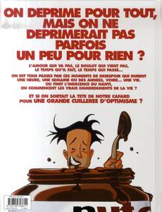 On déprime pour tout, mais on ne déprimerait pas parfois un peu pour rien ? L'amour qui va pas, le boulot qui vient pas, le temps qu'il fait, le temps qui passe... On est tous passés par ces moments de désespoir qui durent une heure, une semaine ou des années, voire... Une vie. Où finit l'indécence du nanti, où commencent les vrais emmerdements de la vie ? Et si on sortait la tête de notre cafard pour une grande cuillerée d'optimisme oe\0