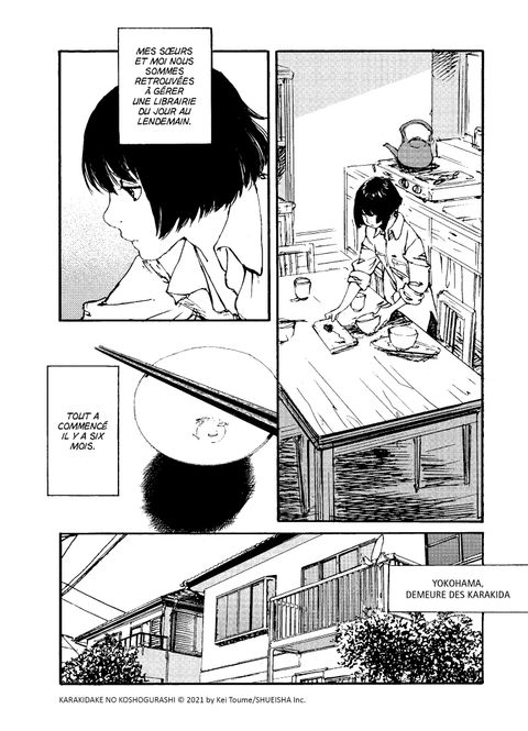 Jimbocho, le paradis des bouquinistes. Les soeurs Karakida s'y installent comme elles peuvent, après la reprise de la librairie de leur regretté grand-père Véritable mine d'or pour les collectionneurs, elle abriterait des chefs-d'oeuvre de l'édition et certains semblent prêts à tout pour mettre la main sur ces trésors de la littérature.Entre la gestion de la librairie pour Tsugumi, les soirées arrosées et les peines de coeur d'Ichika et la vie lycéenne rebelle de Minoru, le quotidien déjà haut en couleur de ces trois jeunes filles risque de ne pas être de tout repos !Après Sing Yesterday For Me et Les Mystères de Taishô, Kei Toume revient avec Jimbôchô Sisters, une comédie aux personnages féminins haut en couleurs dans le célèbre quartier japonais de Jimbôchô.