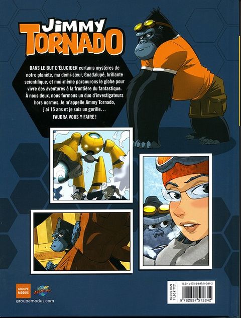 Dans le but d'élucider certains mystères de notre planète, ma demi-soeur, Guadalupé, brillante scientifique, et moi-même parcourons le globe pour vivre des aventures à la frontière du fantastique. À nous deux, nous formons un duo d'investigateurs hors normes. Je m'appelle Jimmy Tornado, j'ai 15 ans et je suis un gorille... Faudra vous y faire !