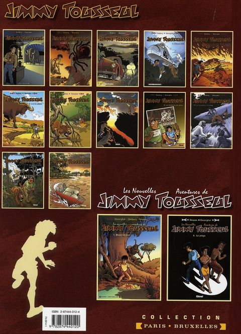 Jimmy Tousseul vous fera vivre ses aventures les plus folles, vous guidera dans l'Afrique des années 60 au travers d'histoires sensibles, documentées, bien ficelées et bourrées de personnages attachants. De la passion grandissante du tout jeune Jimmy pour l'Afrique à la concrétisation de son premier voyage vers ces terres... ces premiers tomes le lancent sur les traces de ses parents trop tôt disparus ! Enfin réédités, les aventures de Jimmy Tousseul sont à compter parmi les derniers grands classiques de la ligne claire. Mais ce n'est pas tout car, à côté des rééditions, voici une nouveauté, «Les Nouvelles aventures de Jimmy Tousseul », où le jeune héros pousse plus loin sa découverte de l'Afrique profonde... et se frotte à ses traditions les plus mystérieuses.