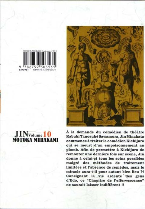 À la demande du comédien de théâtre Kabuki Tanosuké Sawamura, Jin Minakata commence à traiter le comédien Kichijuro qui se meurt d'un empoisonnement au plomb. Afin de permettre à Kichijuro de remonter une dernière fois sur scène, Jin donne à celui-ci tous les soins possibles malgré des méthodes de traitement limitées et l'absence de remèdes, mais le miracle aura-t-il pour autant bien lieu ?! Consignant la vie ardente des gens d'Edo, ce ""Chapitre de l'effervescence"" ne saurait laisser indifférent !