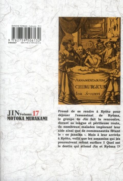 Pressé de se rendre à Kyôto pour déjouer l'assassinat de Ryôma, le groupe de Jin fait la rencontre, durant sa longue et périlleuse route, de nombreux malades implorant leur aide, ainsi que de communautés fêtant le « ee janaika ». Mais à leur arrivée à Kyôto, voilà que les assassins qui les poursuivent refont surface !! Quel est le destin qui attend Jin et Ryôma !?