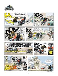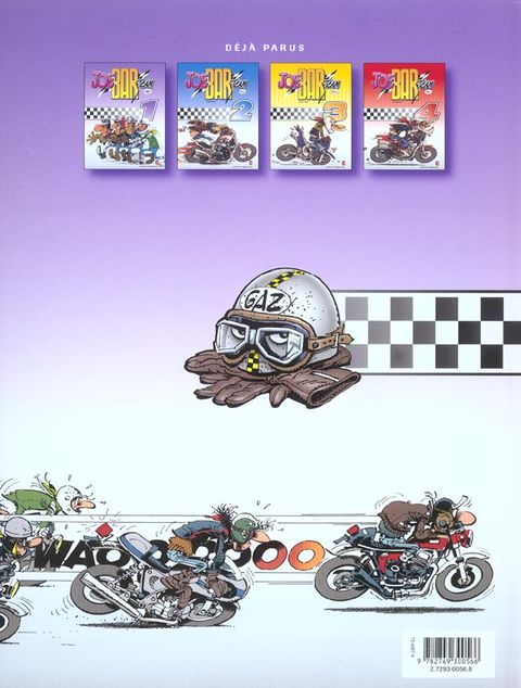 Ils sont 7 cinglés à moto prêts à tout. Champions des tours chronométrés du pâté de maison, ces rois de l'arsouille cumulent les gamelles. Quand ils ne sont pas sur leurs motos, on les retrouve au comptoir du Joe Bar en train de commenter leurs derniers exploits avec une mauvaise foi de rigueur ... Cette BD qui pétarade, sent l'huile bouillie et le radar cramé, est plus qu'un succès phénoménal. Tous les motards en herbe se sont réveillés à la lecture de ces gags pour, à l'unisson, chanter la gloire du Joe Bar Team... refrain repris en coeur par les lecteurs de BD du monde entier. Opération lifting pour le Joe Bar Team, la série culte des années 90, qui change la carrosserie de ses 4 bolides : une nouvelle impression et4 nouvelles couvertures, dynamiques et accrocheuses, viennent revitaminer la collection qui s'apprête, du même coup, à toucher encore plus de nouveaux lecteurs. En attendant l'arrivée du tome 5, signé Bar2, et le raz de marée qui s'en suivra, voici les aventures du Joe Bar Team prêtes à gagner tout un tas de nouvelles courses !
