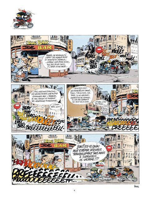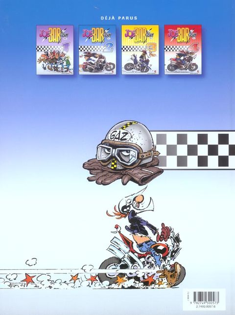 Ils sont 7 cinglés à moto prêts à tout. Champions des tours chronométrés du pâté de maison, ces rois de l'arsouille cumulent les gamelles. Quand ils ne sont pas sur leurs motos, on les retrouve au comptoir du Joe Bar en train de commenter leurs derniers exploits avec une mauvaise foi de rigueur ... Cette BD qui pétarade, sent l'huile bouillie et le radar cramé, est plus qu'un succès phénoménal. Tous les motards en herbe se sont réveillés à la lecture de ces gags pour, à l'unisson, chanter la gloire du Joe Bar Team... refrain repris en coeur par les lecteurs de BD du monde entier. Opération lifting pour le Joe Bar Team, la série culte des années 90, qui change la carrosseries de ses 4 bolides : une nouvelle impression et 4 nouvelles couvertures, dynamiques et accrocheuses, viennent revitaminer la collection qui s'apprête, du même coup, à toucher encore plus de nouveaux lecteurs. En attendant l'arrivée du tome 5, signé Bar2, et le raz de marée qui s'en suivra, voici les aventures du Joe Bar Team prêtes à gagner tout un tas de nouvelles courses !
