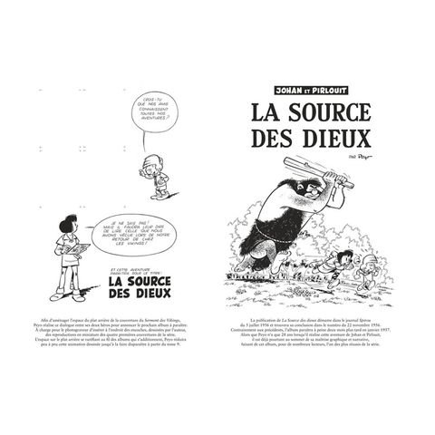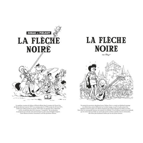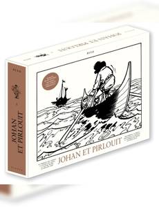 Ce deuxième coffret d'art de « La Grande bibliothèque » consacré à "Johan et Pirlouit" comporte tous les récits imaginés et dessinés par l'auteur entre 1955 et 1957, soit 3 albums complets et 6 histoires courtes publiées dans Risque-Tout et le journal Spirou. Lorsque Dupuis lance en 1955 un nouvel hebdomadaire à destination des jeunes, les auteurs de Spirou sont appelés à la barre. C'est ainsi que Peyo dessinera 4 histoires courtes mettant en scène Johan et Pirlouit pour Risque-Tout : Le Dragon vert, Enguerran le Preux, Sortilèges au château, À l'auberge du pendu. Il ne met pas pour autant de côté des récits plus longs, et les lecteurs de Spirou ont la joie de retrouver les deux héros dans deux grands récits : Le Serment des Vikings puis La Source des dieux. Immédiatement après la publication de ce dernier, Peyo réalise de nouveau une historiette pour un spécial Noël : Veillée de Noël. Il continue avec un tome complet, La Flèche noire, et début 1957 par un récit de 2 planches pour le numéro 1000 du Journal : Les Mille Écus ! Cet ouvrage comporte 330 pages à l'italienne en format géant sur beau papier mat. Les planches sont présentées comme lorsque Peyo les travaillait à l'époque.