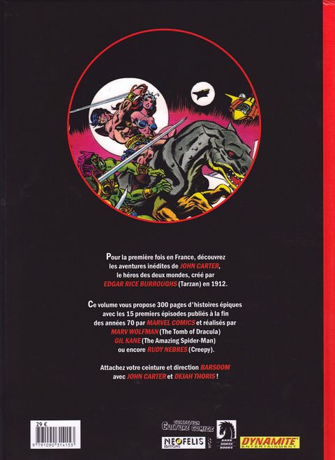 Pour la Première Fois en France, Découvrez les Aventures Inédites de John Carter, le Héros des Deux Mondes, Créé par Edgar Rice Burroughs (tarzan) en 1912. ce Volume vous Propose 296 Pages d'Histoires Epiques avec les 15 Premiers Episodes Publiés à la Fin des Années 70 par Marvel Comics Et Réalisés par Marv Wolfman (tomb Of Dracula, Daredevil...), Gil Kane (conan, Amazing Spider-Man...) ou Encore Rudy Nebres (iron Fist, Vampirella...). Attachez votre Ceinture et Direction Barsoom avec John Carter et Dejah Thoris !