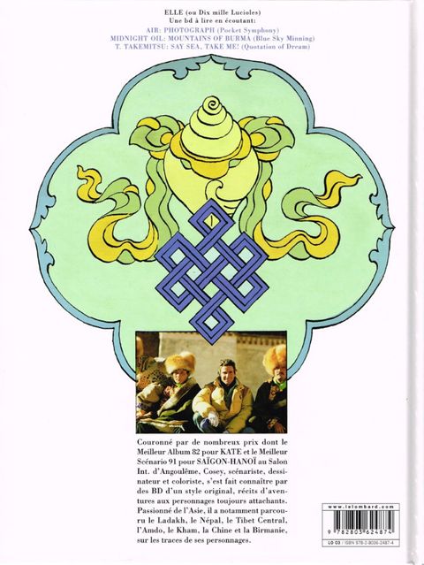 Couronné par de nombreux prix dont le Meilleur Album 82 pour KATE et le Meilleur Scénario 91 pour SAIGON HANOI au Salon Int. d'Angoulême, Cosey, scénariste, dessinateur et coloriste, s'est fait connaître par des BD d'un style original, récits d'aventures aux personnages toujours attachants. Passionné de l'Asie, il a notamment parcouru le Ladakh, le Népal, le Tibet Central, l'Amdo, le Kham, la Chine et la Birmanie, sur les traces de ses personnages.