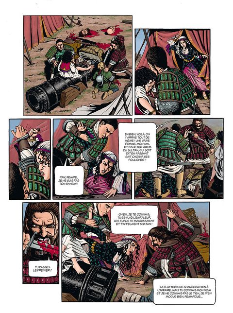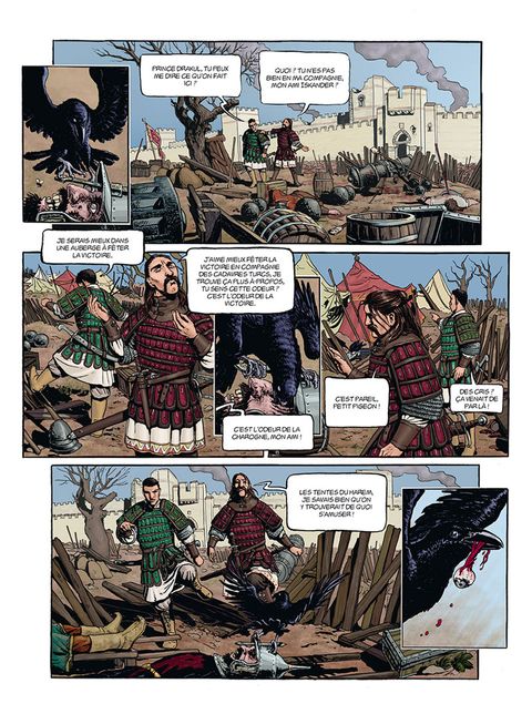 1453, sur les ruines du camp turc ravagé, Iskander et Vlad Tepes progressent à pied au milieu des objets abandonnés et des cadavres besognés par les corbeaux. Ils pénètrent dans l'une des tentes harem des Turcs. Trois soudards sont en train de maintenir une gamine contre les restes d'un canon. Vlad en tue deux et toise le troisième qui demande grâce. Mais Vlad Drakul ne fait grâce à personne.