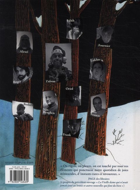 Après "La Vieille dame qui n'avait jamais joué au tennis", voici le nouveau recueil de nouvelles de Zidrou et d'une dizaine de dessinateurs, parmi lesquels on retrouve de grands noms comme Will, Fournier (à qui l'on doit la superbe couverture) ou Frank Pé. Sont réunies ici quatorze histoires courtes, drôles et décalées, toutes inédites en albums. Scénariste de nombreuses séries ("ProTecto", "Le Boss", "Tamara", "Elève Ducobu", "Les Crannibales", etc.) et pilier du Journal de Spirou, Zidrou manie avec aisance tous les registres de l'humour, du très noir au bon enfant en passant par le franchement satirique. Le recueil de nouvelles "La Vieille dame...", unanimement salué pour sa profondeur et sa sensibilité, avait dévoilé il y a un an une nouvelle facette de son talent de conteur. Les onze dessinateurs sont Alexeï, Bodart, Edith, Fournier, Frank, Jordi Lafebre, Mio Franco, Roger, Oriol, Laurent Van Beughen, Will.