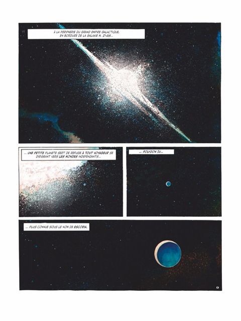 Juan Gimenez est l'un des plus grands dessinateurs de science-fiction. Ses talents de visionnaire sont remarquables. Ses scénarios aboutis ressemblent à des westerns futuristes où les règlements de comptes se déroulent dans l'espace intersidéral. Et surtout son dessin est d'une grande finesse, d'une subtilité renversante et ses couleurs, éblouissantes. Qu'il agisse seul ou accompagné de Barreiro ou de Trillo, Gimenez nous fait aimer le futur, même s'il est apocalyptique... Retrouvez, pour la première fois, 4 récits de Gimenez - Étoile noire, Gangrène, Mutante et Titania - rassemblés dans une intégrale sobrement intitulé La saga SF. Avec un cahier supplémentaire de croquis, cet ouvrage rend hommage à l'oeuvre futuriste du maître, dans la lignée et l'esprit de la Caste des Méta-barons.