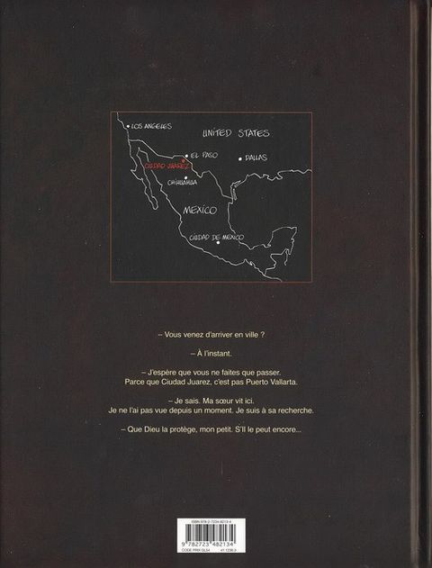 Depuis 1993, dans la petite ville frontière de Ciudad Juarez, près de 2000 cadavres de femmes ont été retrouvés, et plus de 2000 sont portées disparues. Sûr que ça crée des vocations. Gael Garcia Morales est venu à Juarez pour y retrouver la trace de sa soeur, dont le visage figure parmi ceux des milliers de disparues pour lesquelles les familles désespérées collent des affichettes. Quelques mois plus tôt, elle avait rejoint l'association Esperanza, qui s'oppose aux trafiquants de drogue, aux policiers complaisants et aux avocats véreux pour faire la lumière sur ces assassinats ignobles. Mais Juarez n'aime pas les fouineurs. Certains ont tenté de mener leur propre enquête, on ne les a jamais revus... Dans le domaine de l'horreur, la réalité dépasse malheureusement souvent la fiction, et les auteurs se sont inspirés de faits réels pour ce one shot racontant l'enquête d'un personnage, menée au coeur des vérités obscures de cette cité mexicaine gouvernée par le crime et l'impunité.