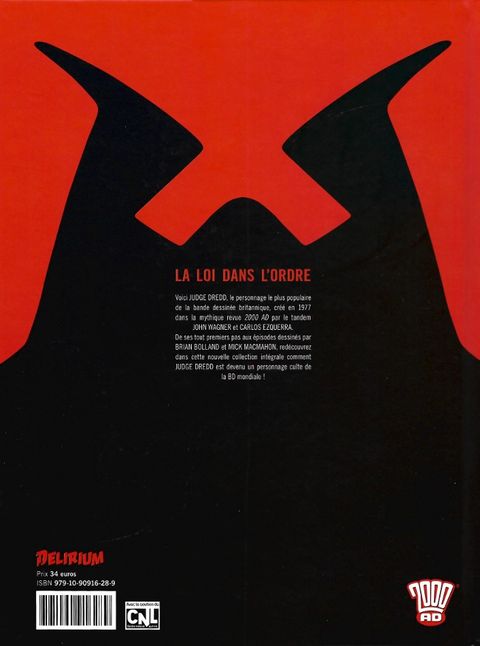 En février 2017, le magazine culte britannique 2000 AD et son personnage le plus populaire, Judge Dredd, auront 40 ans. Pour célébrer cet évènement, Delirium lance avec ce premier volume une nouvelle collection d'anthologies reprenant les histoires de Judge Dredd dans leur ordre chronologique. Avec une nouvelle traduction soignée et dans un format prestigieux, il sera enfin possible de redécouvrir ce personnage mal connu, de ses tout premiers pas hésitants au personnage culte qu'il deviendra sous la plume et le trait d'auteurs emblématiques tels John Wagner et Pat Mills aux scénarios, ou Brian Bolland, Mick MacMahon, Carlos Ezquerra, Kevin O'Neill aux dessins, pour n'en citer que quelques-uns tant la liste est impressionnante ! A cette occasion, les lecteurs pourront également découvrir ces histoires telles qu'elles furent publiées à l'époque avec leurs pages en couleurs. En plus d'une galerie de couvertures, d'histoires additionnelles et de la toute première histoire non publiée de Judge Dredd, Pat Mills, rédacteur-en chef de 2000 AD à la création du magazine et scénariste plébiscité notamment pour La Grande Guerre de Charlie, Slaine, ou Requiem signe une préface exclusive pour cette édition française où il nous relate l'origine du magazine culte et de son personnage phare, devenu à ce jour l'une des créations les plus populaires de la bande dessinée britannique.