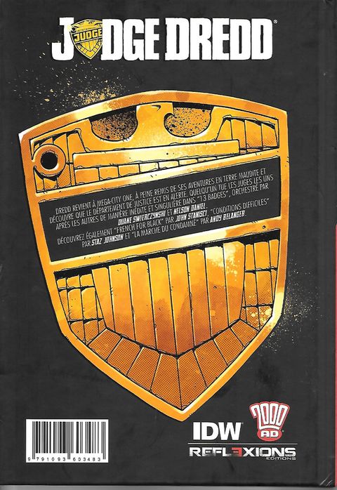 Dredd revient à Mega-City One, à peine remis de ses aventures en terre maudite, et découvre que le département de Justice est en alerte. Quelqu'un tue les juges les uns après les autres de manières inédite et singulière. Quatrième tome de la série, avec le même duo aux manettes, Nelson Daniel et Duane Swierczynski, qui continue de nous surprendre. L'histoire est solide et le trait percutant. Les aventures de Dredd se poursuivent !