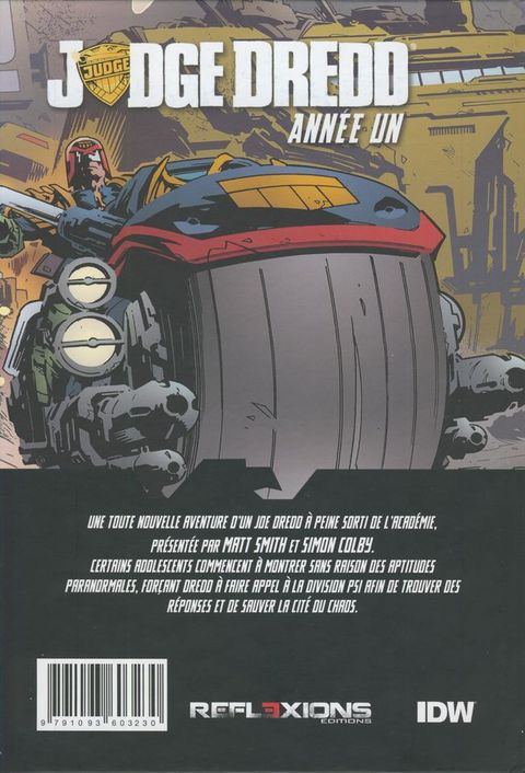 Dans Judge Dredd : Année Un, nous suivons les premières aventures d'un Joseph Dredd fraîchement diplômé et sorti de l'académie qui se voit affecté à une mission bien plus complexe qu'il n'y paraît : Mega City One voit son nombre d'adolescents développant des pouvoirs psychiques augmenter consiréblement en très peu de temps. Que se passet-il vraiment, et comment tous ces jeunes vont t'il réagir face à leurs pouvoirs ? Une mini-série écrite par Matt Smith (qui a plusieurs fois remporté l'Eisner Award du « Favourite Editor » en étant chez 2000AD) et dessinée par Simon Colby qui nous plonge dans les début de Dredd !
