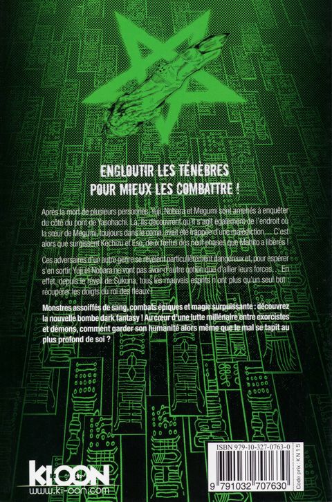Alors que les exorcistes de l'e´cole de Kyoto s'appre^tent a` mettre fin aux jours de Yuji, Aoi s'interpose et leur interdit de prendre part au combat ! En effet, une amitie´ inde´fectible semble lier les deux lyce´ens, qui se lancent dans un duel pour le moins e´tonnant... Pendant ce temps, l'affrontement repart de plus belle entre les autres participants, qui ont rapidement mis la chasse aux fle´aux de co^te´... mais c'e´tait compter sans la venue inattendue de redoutables adversaires ! Les deux e´coles parviendront-elles a` joindre leurs forces pour s'en sortir ? Monstres assoiffe´s de sang, combats e´piques et magie surpuissante : de´couvrez la nouvelle bombe dark fantasy ! Au coeur d'une lutte mille´naire entre exorcistes et de´mons, comment garder son humanite´ alors me^me que le mal se tapit au plus profond de soi ?