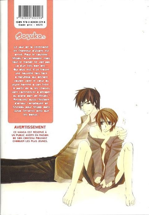 Misaki et Usagi mènent enfin une vie de couple normale... ou presque ! Une réception en l'honneur d'Usami, lauréat du prix Kikukawa, est organisée. Pour le féliciter, Misaki décide de lui offrir des fleurs et croise, au retour, le frère de l'écrivain, Haruhiko, qui n'a pas l'air d'être en très bons termes avec lui... Ne manquez pas aussi Junjo Terrorist, l'histoire poignante du professeur Miyagi de Junjo Egoist et du lycéen Shinobu. Sans oublier Nowaki et Hiroki à l'heure du bain !