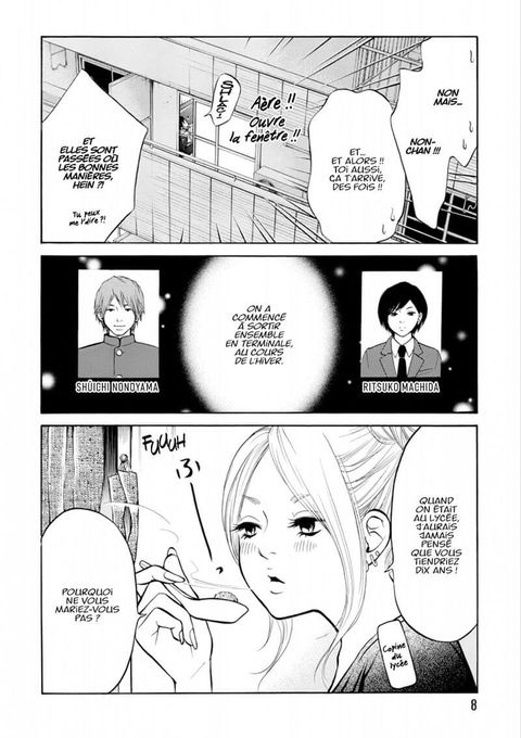 Ritsuko et Shûichi sont en couple depuis qu'ils étaient au lycée. 10 ans de couple, 8 ans de vie commune, inévitablement, les gens leur demandent : "Et vous êtes mariés ? " Ritsuko en a l'habitude et ne s'en inquiète plus du tout. Mais approchant de la trentaine, la pression de l'entourage ne fait qu'augmenter. De manière tacite ou explicite, LA question ne cesse de revenir : "Alors, c'est pour quand ? "