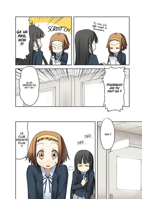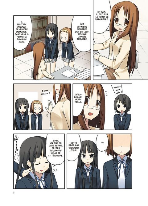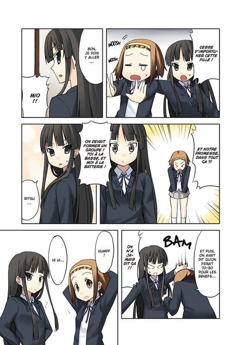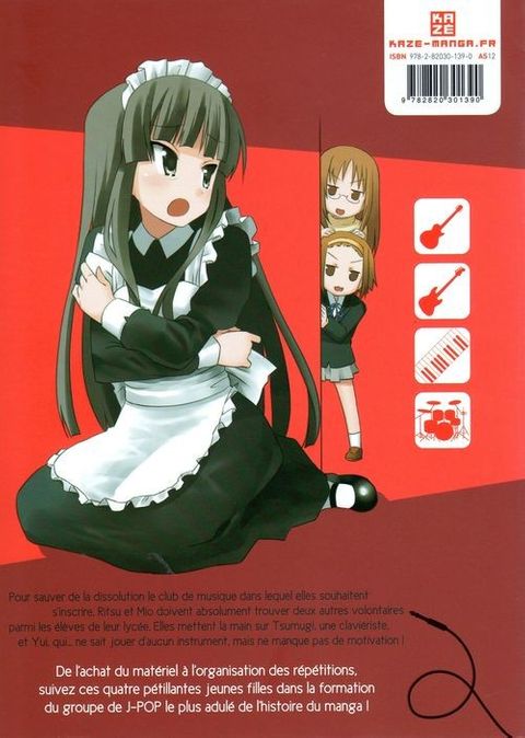 Pour sauver de la dissolution le club de musique dans lequel elles souhaitent s'inscrire, Ritsu et Mio doivent absolument trouver deux autres volontaires parmi les élèves de leur lycée. Elles mettent la main sur Tsurugi, une claviériste, et Yui, qui. ne sait jouer d'aucun instrument, mais ne manque pas de motivation ! De l'achat du matériel à l'organisation des répétitions, suivez ces quatre pétillantes jeunes filles dans la formation du groupe de J-pop le plus adulé de l'histoire du manga !