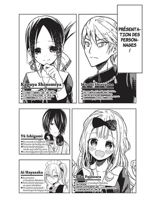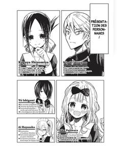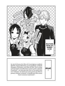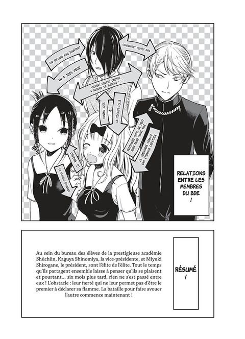 Miyuki Shirogane, le président, et Kaguya Shinomiya, la vice-présidente, se sont rencontrés au BDE de l’académie Shûchiin, un lycée fréquenté par l’élite. Le quotidien de ces deux petits génies est parsemé de multiples stratagèmes pour séduire l’autre et l’obliger à avouer ses sentiments ! La chaleur de l’été accable les membres du BDE qui organisent leurs vacances à venir. Vont-ils réussir à mettre en place les fameuses sorties mixtes tant escomptées ? La période est fugace, et le temps manque à Kaguya et Shirogane !