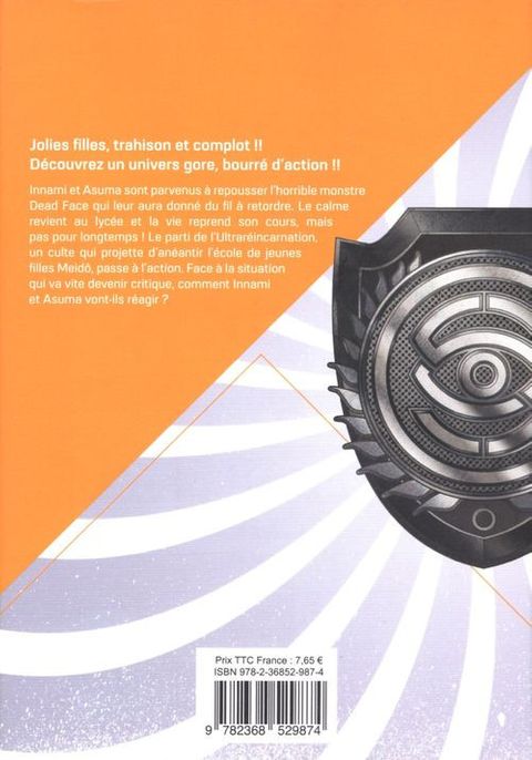 Quand les serial killers combattent le mal ! Le nouveau cocktail détonant du dessinateur de Red Eyes Sword ! Jolies filles, trahison et complot !! Découvrez un univers gore, bourré d'action !! Innami et Asuma sont parvenus à repousser l'horrible monstre Dead Face qui leur a donné du fil à retordre. Le calme revient au lycée et la vie reprend son cours, mais pas pour longtemps ! Le parti de l'Ultraréincarnation, un culte qui projette d'anéantir l'école de jeunes filles Meidô, passe à l'action. Face à la situation qui va vite devenir critique, comment Innami et Asuma vont-ils réagir ?!