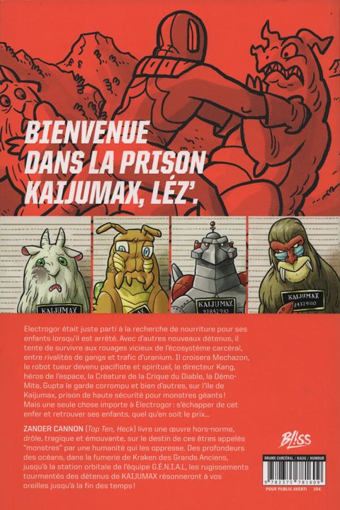 Electrogor était juste parti chercher de quoi nourrir ses enfants lorsqu’il est arrêté. Avec d’autres nouveaux détenus, il tente de survivre aux rouages vicieux de l’écosystème carcéral, entre rivalités de gangs et trafic d’uranium. Il croisera Mechazon, le robot tueur devenu pacifiste et spirituel, le directeur Kang, héros de l’espace, la Créature de la Crique du Diable, Chisato, Démo-Mite, Gupta le garde corrompu et bien d’autres, sur l’île de Kaijumax, prison de haute sécurité pour monstres géants ! Mais une seule chose importe à Electrogor : s’échapper de cet enfer et retrouver ses enfants, quel qu’en soit le prix…