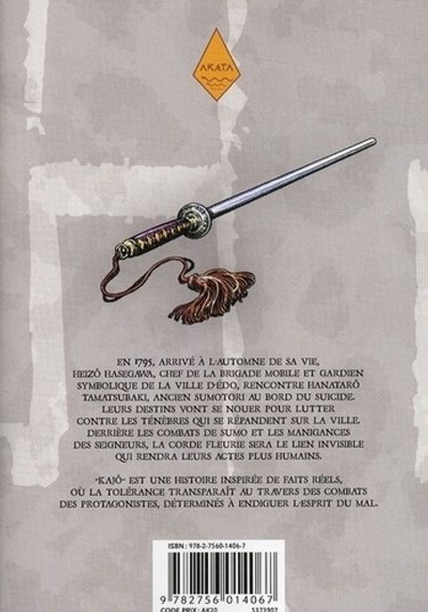 En 1795, arrivé à l'automne de sa vie, heizo hasegawa, chef de la brigade mobile et gardien symbolique de la ville d'edo, rencontre hanatarô tamatsubaki, ancien sumotori au bord du suicide. Leurs destins vont se nouer pour lutter contre les ténèbres qui se répandent sur la ville. derrière les combats de sumo et les manigances des seigneurs, la corde fleurie sera le lien invisible qui rendra leurs actes plus humains. ""kaiô"" est une histoire inspirée de faits réels, oú la tolérance transparaît au travers des combats des protagonistes, déterminés à endiguer l'esprit du mal.