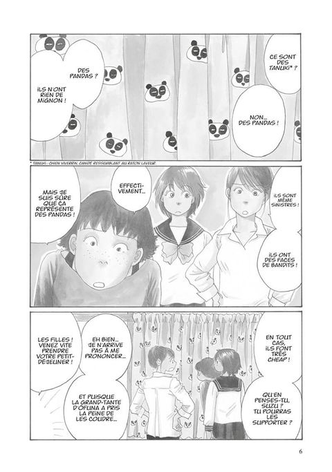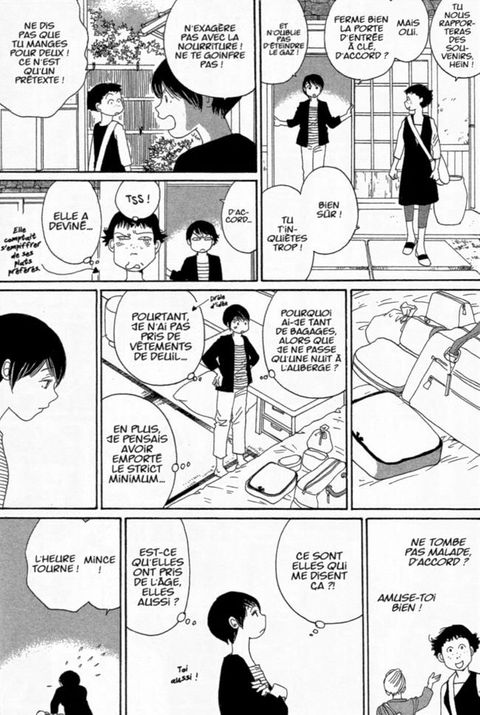 Quand Yoshino, la deuxième fille d'une famille de trois soeurs, reçoit l'annonce de la mort de son père, elle est en train de se réveiller dans la chambre d'un garçon... Le décès de ce père, qu'elle n'a plus vu depuis longtemps, à la suite du divorce de ses parents, ne l'émeut pas beaucoup... Pourtant, cette nouvelle pourraient bien changer leur vie ! Akimi Yoshida excelle dans la description, tout en finesse, de l'importance du lien familial !