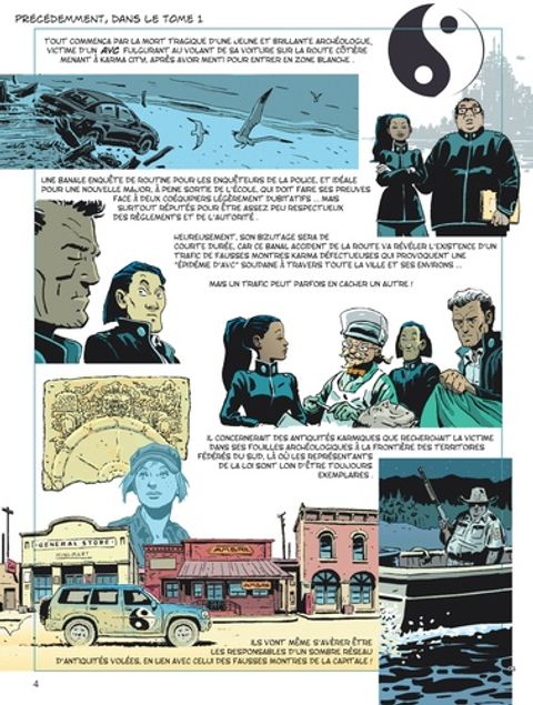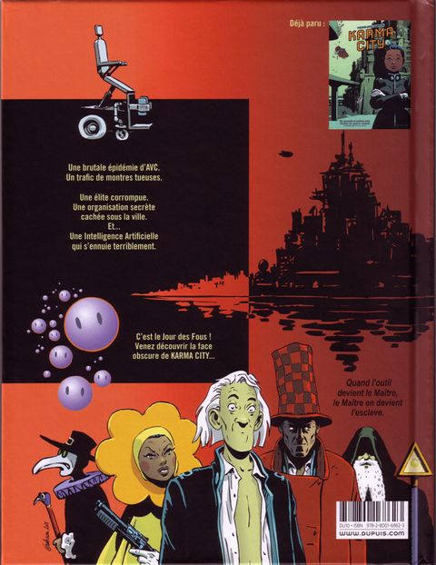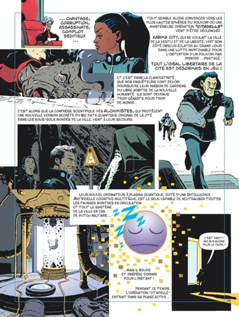 Karma City : une ville vertueuse régie par les lois universelles du karma, où l'intérêt général primerait toujours sur l'intérêt particulier. Les agents karmiques Cooper, Asuka et Napoli ont enfin réussi à démanteler le réseau de revente d'antiquités découvert par la malheureuse Emma List. La juge Bénédicte, réputée impartiale, est responsable pour trancher cette affaire. Inexplicablement, elle prend la défense des coupables contre la Major Cooper. Alors que celle-ci la pousse dans ses retranchements, la juge décède soudainement d'un AVC. Les trois enquêteurs comprennent alors que les hautes-sphères de la société sont touchées par un complot d'une ampleur insoupçonnable. Commencent pour eux une cavale, véritable course contre la montre, où ils vont rejoindre les réseaux abandonnés de la ville pour tenter de survivre. Survivre et surtout démanteler cette mystérieuse organisation qui semble en vouloir au libre-arbitre humain. Heureusement, depuis toujours les Alchimistes prévoient une autre voie, un autre chemin, réfléchissant avec Zuber, une I.A. consciente, à l'avenir possible de l'Humanité entière. Mais à vouloir accorder trop de puissance à une machine en lui donnant la connaissance d'elle-même, qui devient le maître et qui se transforme en esclave ?