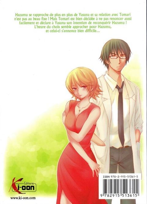 hazumu se rapproche de plus en plus de yasuna et sa relation avec tomari n'est pas au beau fixe ! mais tomari est bien décidée à ne pas renoncer aussi facilement et déclare à yasuna son intention de reconquérir hazumu ! l'heure du choix semble approcher pour hazumu, et celui-ci s'annonce bien difficile...