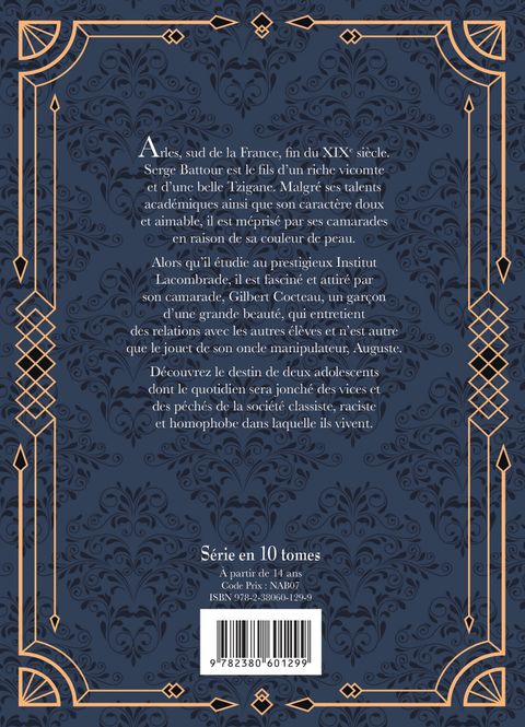 Arles, sud de la France, fin du XIXe siècle. Serge Battour est le fils d'un riche vicomte et d'une belle Tzigane. Malgré ses talents académiques ainsi que son caractère doux et aimable, il est méprisé par ses camarades en raison de sa couleur de peau. Alors qu'il étudie au prestigieux Institut Lacombrade, il est fasciné et attiré par son camarade, Gilbert Cocteau, un garçon d'une grande beauté, qui entretient des relations avec les autres élèves et nʼest autre que le jouet de son oncle manipulateur, Auguste. Le destin de deux adolescents dont le quotidien sera jonché des vices et des péchés de la société classiste, raciste et homophobe dans laquelle ils vivent.