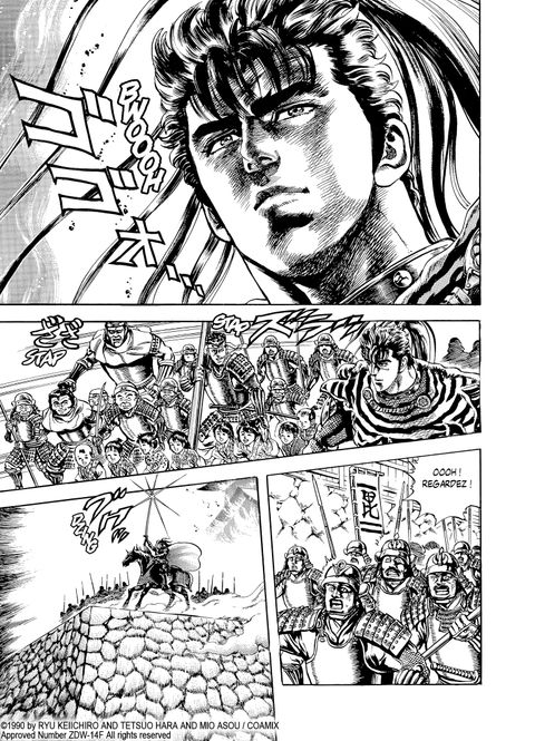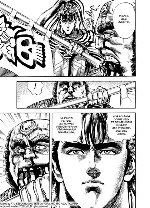 Le temps est venu de s'emparer du château de Kawarada ! Keiji et sa troupe, composée de prisonniers et de vieillards, sont la risée des hommes d'Uesugi. Kagekatsu leur laisse néanmoins une chance de prouver leur valeur au combat. Grâce à un astucieux stratagème, Keiji parvient à ranger le vil Samanosuké à ses côtés et la prise du château n'est plus qu'une question de temps. La victoire est au rendez-vous mais au prix des vies d'hommes courageux comme Yukinojô ou bien Bantô... C'est maintenant l'heure de pacifier la région et pour cela, Takamochi doit servir d'exemple : il sera crucifié avec sa famille ! Keiji va retrouver un visage familier, celui de Honé, qui lui révèle qui est le véritable comploteur qui a mis Sado à feu et à sang. Batailles, moments de bravoure mais aussi stratégies et coups bas sont au rendez-vous dans ce 10e volume. En matière de complot, les apparences sont parfois trompeuses et les affrontements qui déchirent le Japon sont loin d'être finis.
