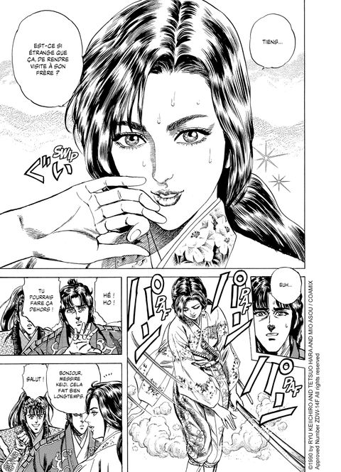 sukuemon reçoit la visite de sa jeune soeur kana qui est secrètement amoureuse de keiji. or, le coeur de ce dernier appartient à dame o-matsu. kana use alors d'un stratagème qui aura des conséquences extrêmement graves pour le fief de sukuemon. mais les deux amis devraient trouver le moyen d'éviter de s'entre-tuer... heureusement, car ils risquent d'avoir encore besoin l'un de l'autre. la région de sado est au centre d'une querelle entre différents seigneurs et l'affrontement semble inévitable. chacun prend position et se prépare pour la bataille. mais un îlot imprenable empêche toute avancée militaire, ce qui décide keiji à monter sa propre armée en recrutant ses soldats... dans des endroits pour le moins inattendus !