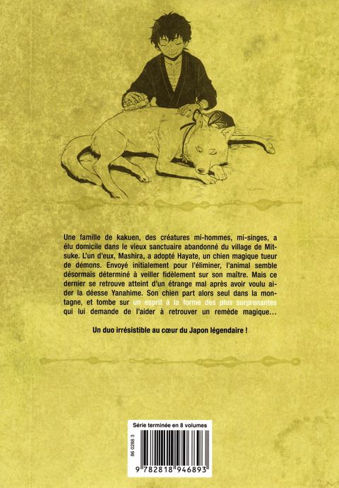 Un duo irrésistible au coeur du Japon légendaire !Une famille de kakuen, des créatures mi-hommes, mi-singes, a élu domicile dans le vieux sanctuaire abandonné du village de Mitsuke, dans la province d'Enshû. L'un deux, Mashira, a adopté un chien magique tueur de démons envoyé initialement pour l'éliminer, mais qui semble désormais déterminé à veiller fidèlement sur son maître. Alors que le moine Benzon continue son enquête au village, Mashira, qui a remis à l'eau une splendide anguille blanche dans le fleuve Tenryû, se réveille au Palais du Dragon !