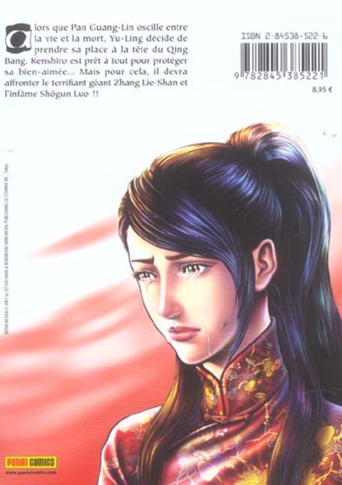 alors que pan guang-lin oscille entre la vie et la mort, yu-ling décide de prendre sa place à la tête du qing bang. kenshiro est prêt à tout pour protéger sa bien-aimée. mais pour cela, il devra affronter le terrifiant géant zhang lie-shan et l'infâme shôgun luo !!.