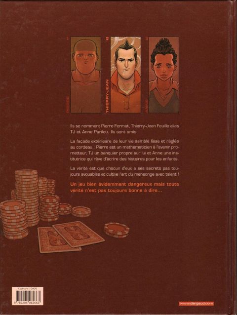 Second volet de ce polar percutant qui met en scène trois amis, Pierre, Anne et Thierry-Jean alias TJ. C'est ce dernier, banquier le jour et joueur la nuit, que nous découvrons plus précisément, après avoir suivi la double vie de Pierre le boxeur mathématicien. Un véritable exercice de style autour des faux-semblants et des mensonges... Toute vérité n'est pas toujours bonne à dire !