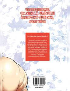 UNE TECHNIQUE, ÇA SERT À VAINCRE PLUS FORT QUE SOI, CEST TOUT.[La Zone d'occupation illégale]Constituée d'anciens villages du Kantô tombés les uns à la suite des autres dans l'anarchie entre la fin du shogunat des Tokugawa et le début de l'ère Meiji (milieu du XIX siècle), cette zone a été délaissée par les autorités. Aujourd'hui, le crime et le vice y sont monnaie courante. On l'appelle communément " l'Intérieur ".