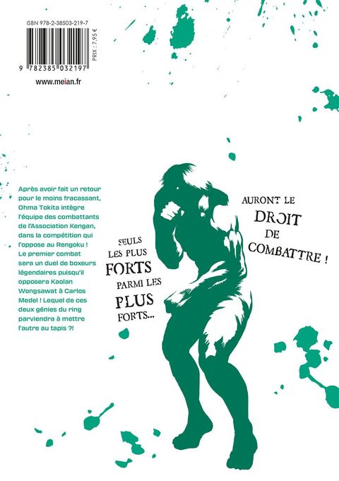 Seuls les plus forts parmi les plus forts auront le droit de combattre !Après avoir fait un retour pour le moins fracassant, Ohma Tokita intègre l'équipe des combattants de l'Association Kengan, dans la compétition qui l'oppose au Rengoku ! Le premier combat sera un duel de boxeurs légendaires puisqu'il opposera Kaolan Wongsawat à Carlos Medel ! Lequel de ces deux génies du ring parviendra à mettre l'autre au tapis ?!