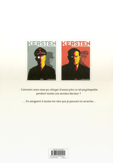 Le 4 juin 1942, Reinhard Heydrich, adjoint de Himmler, est assassiné à Prague par des miliciens tchèques. Enfin débarrassé de celui qui se méfiait le plus de lui, le docteur Félix Kersten croit pouvoir enfin mener à bien sa périlleuse mission auprès de Himmler et monnayer des vies en échange de soins. Mais le remplaçant d'Heydrich va s'avérer être un ennemi encore plus dangereux et sournois... Constamment surveillé, épié, Kersten s'adonne à un véritable numéro d'équilibriste entre son marchandage au chevet de Himmler et sa coopération avec les Alliés. Il ne sera jamais vraiment à l'abri, pas même lorsque la guerre sera finie. Car dès 1948, Kersten, installé en Suède, devient la cible d'une enquête qui lui reproche sa proximité avec l'un des pires criminels nazis...En faisant monter la tension crescendo, Patrice Perna et Fabien Bedouel terminent en beauté ce polar historique haletant basé sur l'incroyable histoire du médecin particulier de Himmler. Personnage injustement oublié de l'Histoire, Félix Kersten sauva pourtant des milliers de prisonniers des camps de la mort durant la seconde guerre mondiale...