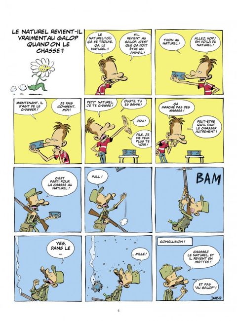 La vie est un vaste territoire de questionnements permanents... et parfois c'est un peu fatigant. Mais tu as de la chance ! Car Dab's te facilite la philosophie en répondant super sérieusement aux questions carrément importantes qui t'empêchent de t'endormir en paix, telles que : « Y a-t-il une différence entre une banane et un boomerang ? », « Peut-on vivre d'amour et d'eau fraîche ? », ou « Une hirondelle fait-elle vraiment le printemps ? » ! Avec ce troisième album concocté par l'auteur de Tony et Alberto, tu seras bientôt aussi érudit que le type qui fait les encyclopédies ! Mais c'est qui d'ailleurs ?... On envoie la question à Dab's pour le prochain Késaco !