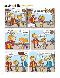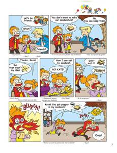 Quand il s'agit de rigoler et de faire des bêtises, Kevin et Kate sont les champions. Grâce à leurs amies Lucy et Barbara, ainsi qu'au chien Hurricane et au hamster Bruce, chaque journée est plus drôle que la précédente. Même quand le méchant Marcus s'en mêle, le frère et la soeur se soutiennent et s'en sortent toujours ! À eux deux, ils peuvent tout faire... ou presque ! Avec un texte entièrement en anglais, des sous-titres en français pour chacune des bulles et des pages de vocabulaire illustré, Kevin and Kate permet aux enfants d'apprendre l'anglais en s'amusant. Les situations de la vie quotidienne permettent un vocabulaire varié, et l'humour de la série fait le reste !