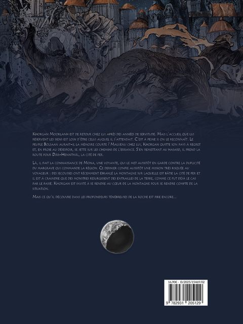 Khorgan Moorlanh est de retour chez lui après des années de servitude. Mais l'accueil que lui réservent les siens est loin d'être celui auquel il s'attendait. C'est à peine si on le reconnaît. Le peuple Bolsaan aurait-il la mémoire courte ? Malvenu chez lui, Khorgan quitte son pays à regret et, en proie au désespoir, se jette sur les chemins de l'errance. S'en remettant au hasard, il prend la route pour Där-Hennthäl. Là, il fait la connaissance de Mona, une voyante, qui le met aussitôt en garde contre le margrave qui commande la région. Ce dernier confie aussitôt une mission très risquée au voyageur : des secousses ont récemment ébranlé la montagne sur laquelle est bâtie la cité de fer et il est à craindre que des monstres resurgissent des entrailles de la terre, comme ce fut déjà le cas par le passé. Khorgan est invité à se rendre au coeur de la montagne pour se rendre compte de la situation. Mais ce qu'il découvre dans les profondeurs ténébreuses de la roche est pire encore...