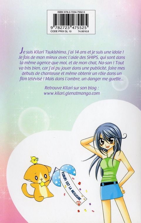 Je suis Kilari Tsukishima, j'ai 14 ans et je suis une idole ! Je fais de mon mieux avec l'aide des SHIPS, qui sont dans la même agence que moi, et de mon chat, Na-san ! Tout va très bien, car j'ai pu jouer dans une publicité, faire mes débuts de chanteuse et même obtenir un rôle dans un film télévisé ! Mais dans l'ombre, un danger me guette...