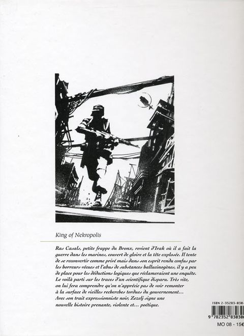 Un privé menant une enquête trouble dans mégalopole déglinguée ... Voilà du grand classique polardesque. Chez Zezelj, bien entendu, les cartes sont battues autrement ! Ras Casal ancienne frappe du Bronx tente de se reconvertir en privé après être revenu couvert de gloire et la tête explosée d'Irak où il a fait la guerre dans les marines. Dans son esprit rendu confus par les horreurs vécues et l'abus de substances hallucinogènes il y a peu de place pour les déductions logiques que réclamerait son enquête. Un vieux scientifique est venu lui demander de retrouver un collègue disparu. En fouinant Ras va vite se rendre compte que ces braves scientifiques travaillaient pour des programmes tordus du gouvernement et qu'en haut lieu, on n'est pas franchement content de voir remonter ces vieilles histoires... Avec son trait expressionniste noir Zezelj signe là une nouvelle histoire prenante, violente et... poétique.