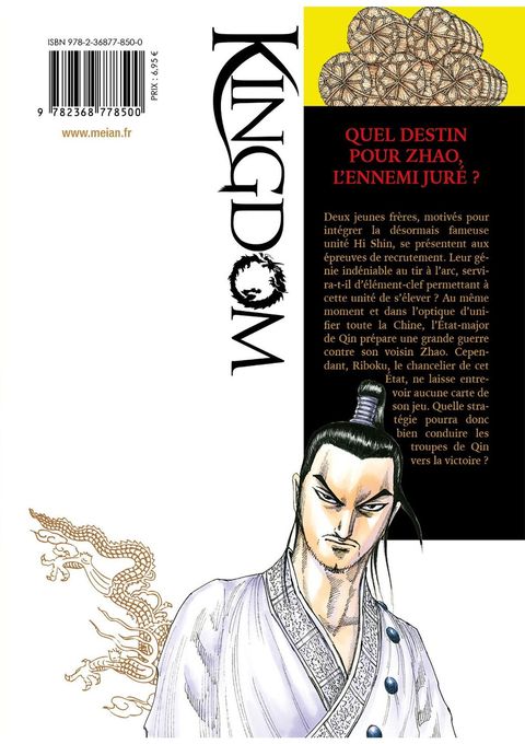 Quel destin pour Zhao, l'ennemi juré ? Deux jeunes frères, motivés pour intégrer la désormais fameuse unité Hi Shin, se présentent aux épreuves de recrutement. Leur génie indéniable au tir à l'arc, servira-t-il d'élément-clef permettant à cette unité de s'élever ? Au même moment et dans l'optique d'unifier toute la Chine, l'Etat-major de Qin prépare une grande guerre contre son voisin Zhao. Cependant, Riboku, le chancelier de cet état, ne laisse entrevoir aucune carte de son jeu. Quelle stratégie pourra donc bien conduire les troupes de Qin vers la victoire ?
